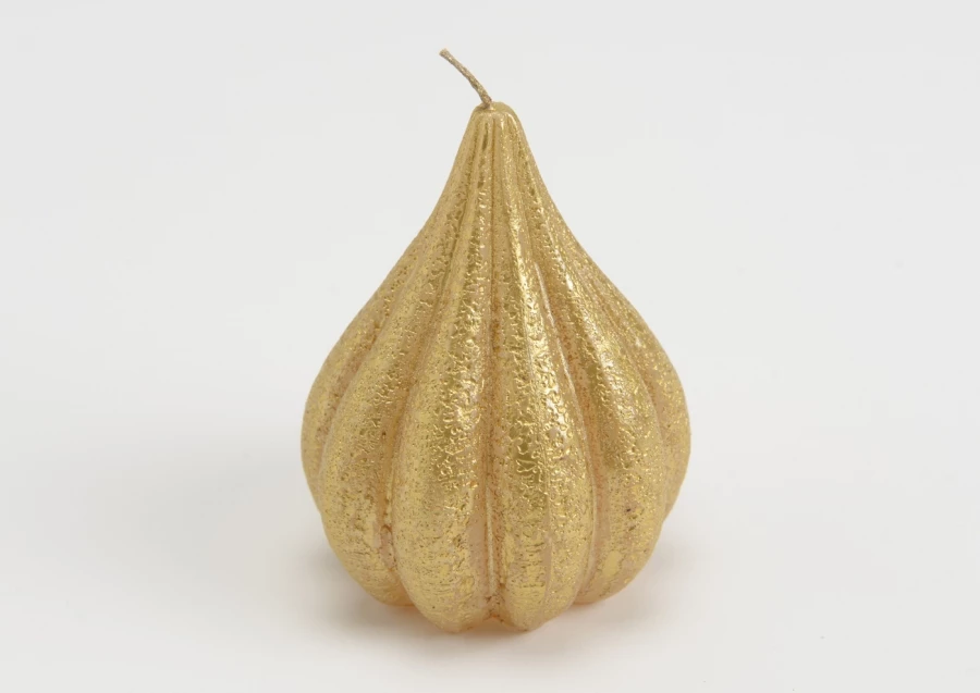 En décoration intemporelle ou pour habiller votre déco de Noël voici la bougie poire striée couleur or.