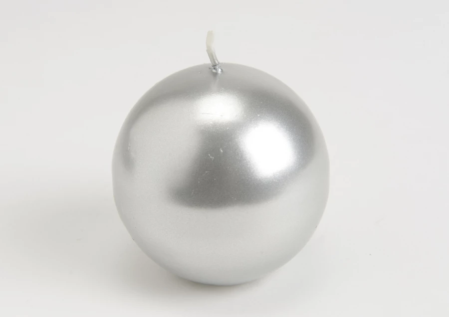 Jolie bougie boule ronde festive avec sa couleur argent brillant, pour vos tables de fin d’année ou pour habiller votre décoration sur le thème argenté.