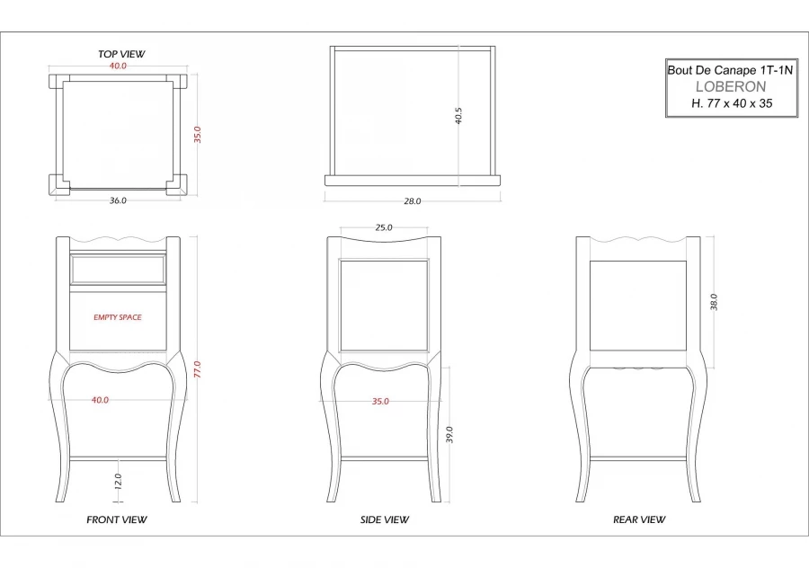 Dimensions : Longueur 40cm x Profondeur35cm x Hauteur 77cm