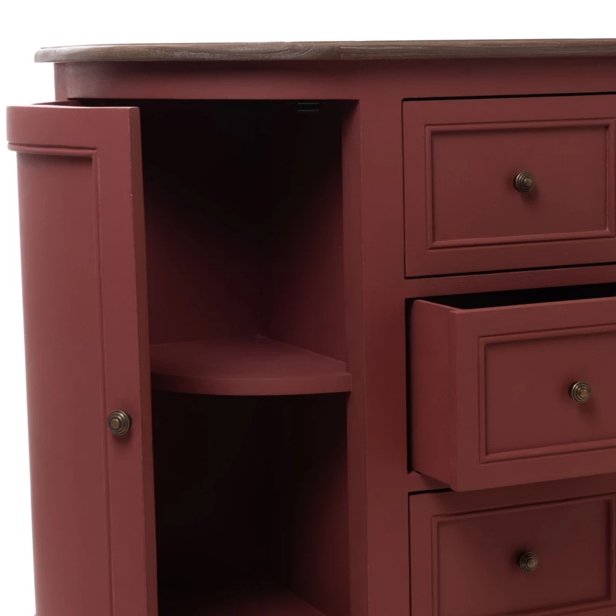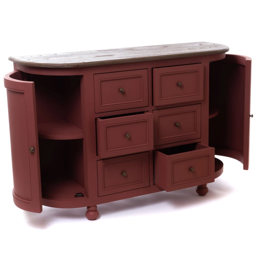 Nouveau buffet bas arrondi de la collection Bohème. Réalisé entièrement en bois ce buffet propose 6 tiroirs et de portes ouvrant sur 1 étagère.