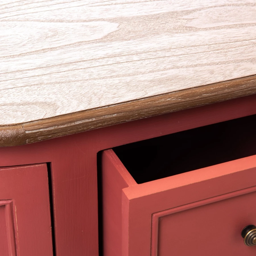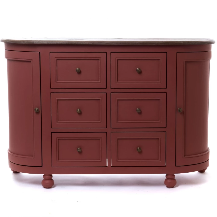 Buffet en 2 tons, avec le corps couleur terracota habillé d’un plateau couleur naturel foncé.