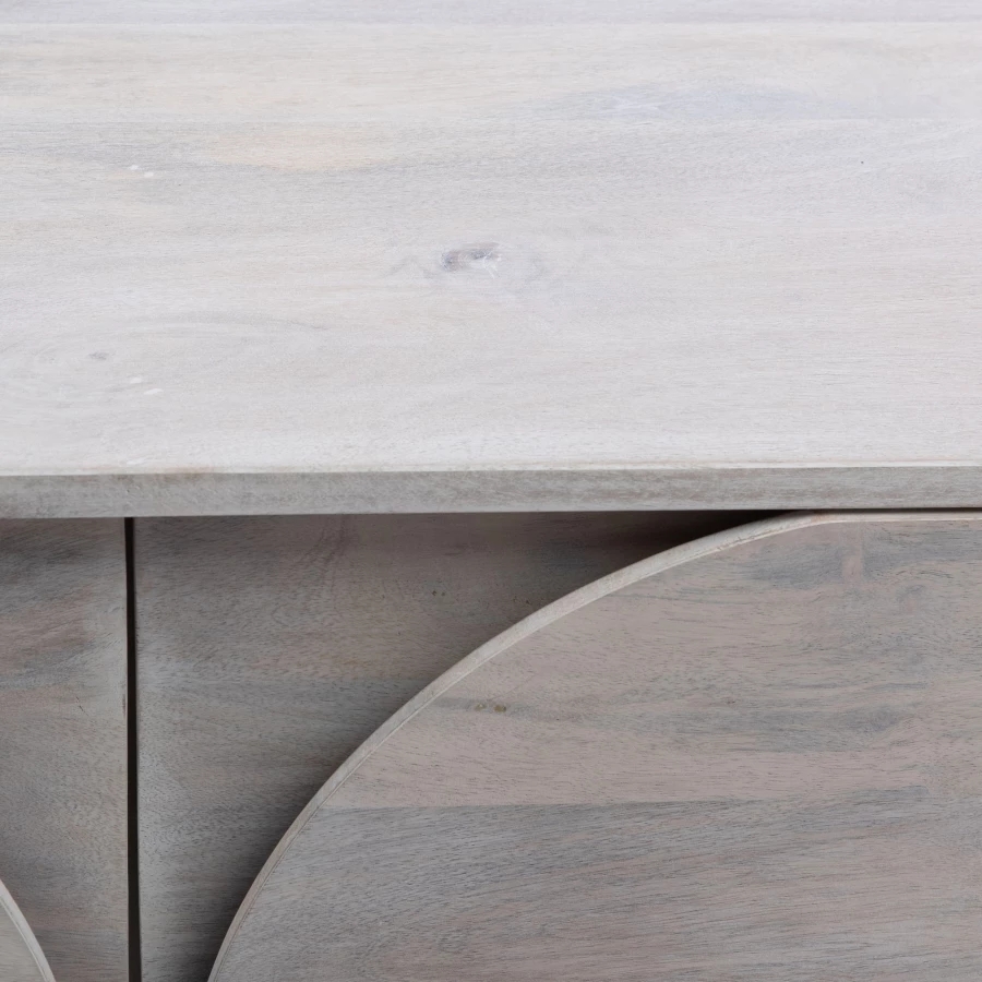 Fuji est une nouvelle collection de meubles en bois de manguier couleur naturel blanchi.