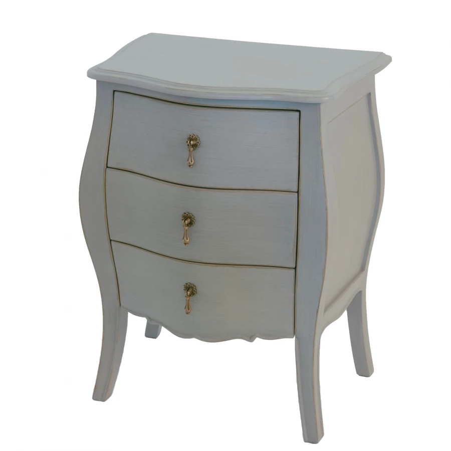 Jolie petite commode, chevet ou bout de canapé proposant 3 tiroirs avec poignées métal mordorées.
