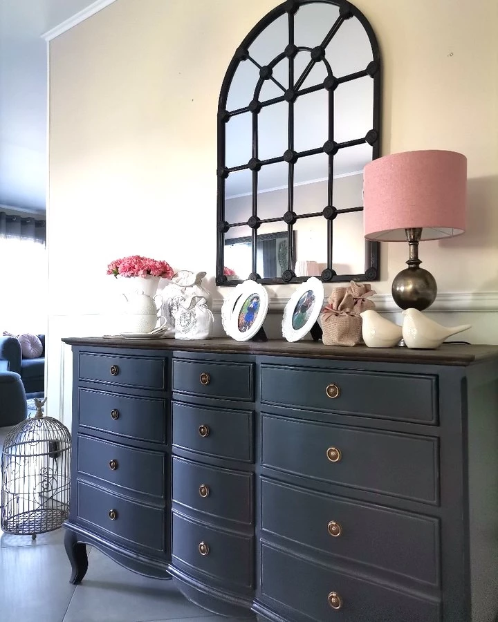 Magnique commode en 2 tons composée de 9 tiroirs de différentes tailles.