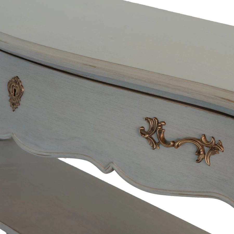 Jolie console proposant 1 tiroir avec poignées métal mordorées et 2 étagères.