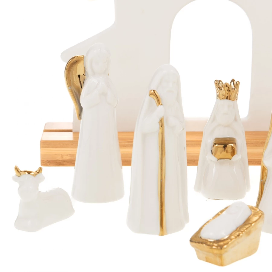 Jolie nouveauté avec cette crèche et ses personnages réalisés en Porcelaine d’un blanc pur et or.