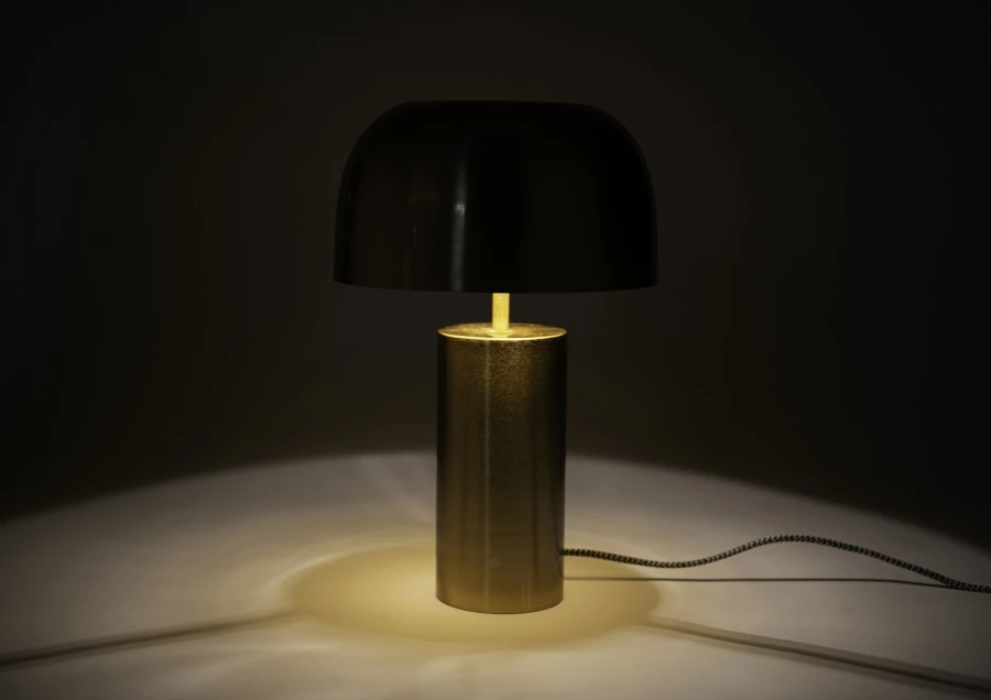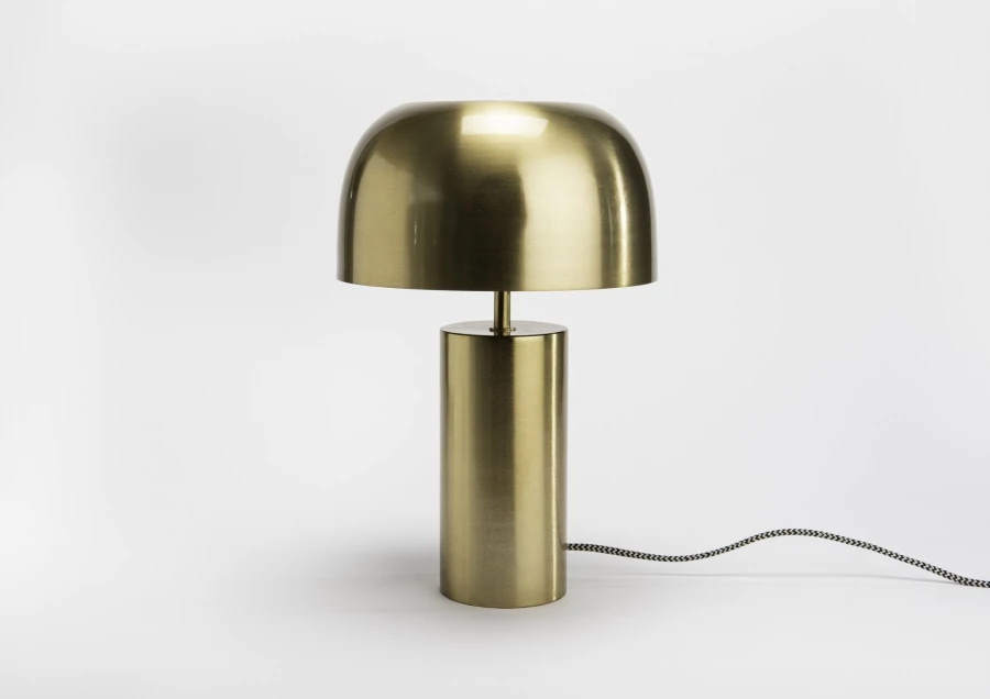 Très grande tendance des lampes aux formes de champignons. Voici la lampe bolet réalisée en métal doré.
