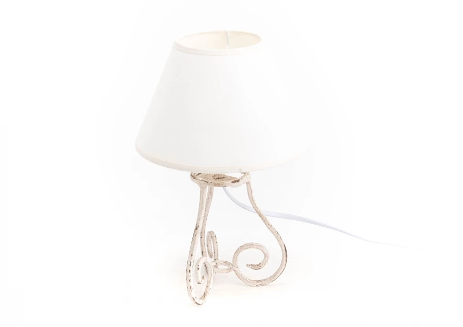 Pied volute en métal blanc vieilli et abat-jour rond blanc ø 18cm