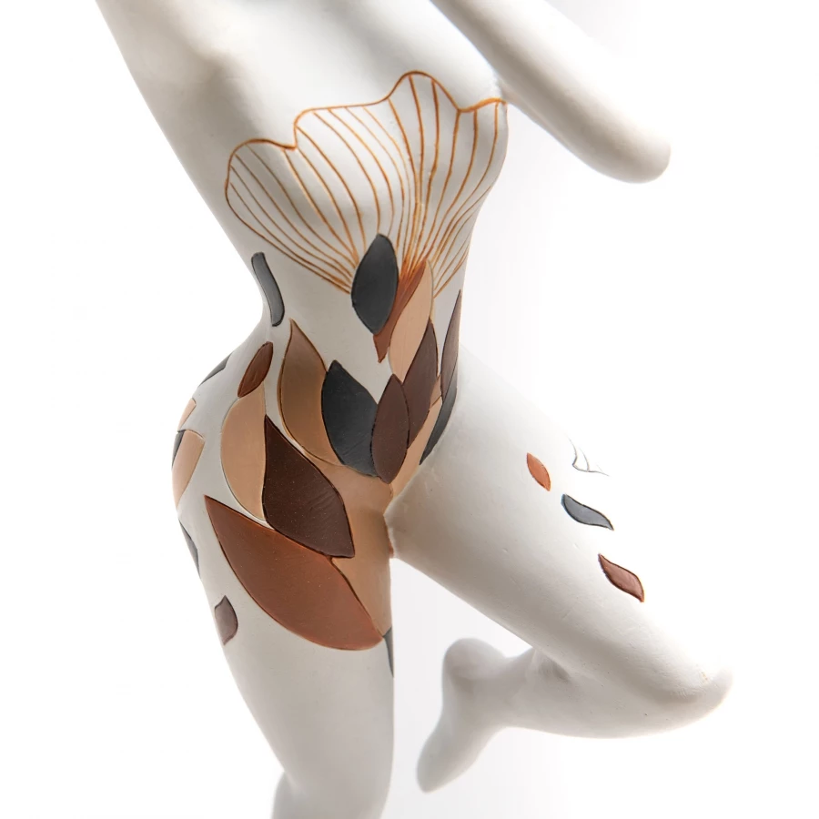 Dans la collection des statuettes colorées voici en nouveauté la femme Eline en position debout. Un joli corps de couleur blanc mat habillé de feuillage colorés dans les déclinaisons terracota, elle sera très remarquée sur une console ou un meuble dans votre intérieur.