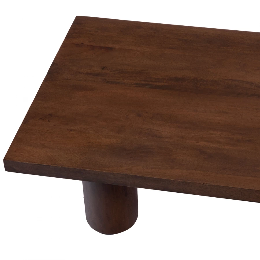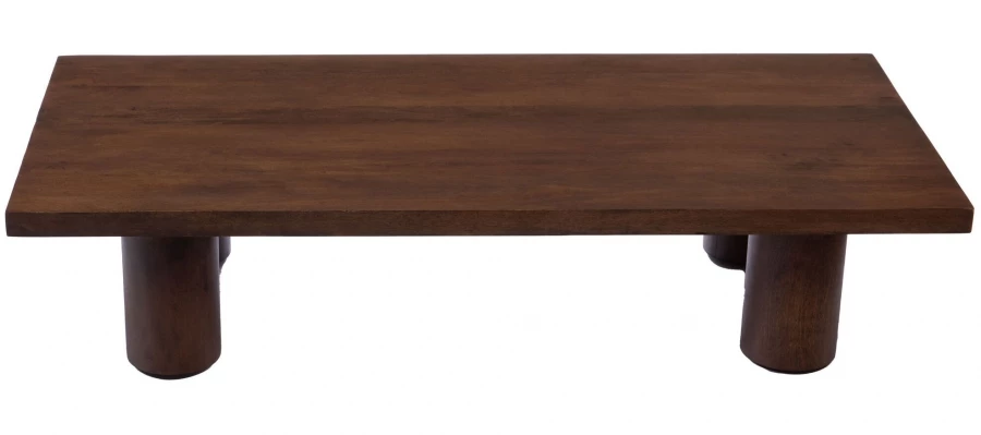 Cette table basse rectangulaire de salon très originale de part sa faible hauteur est entièrement réalisée en bois de manguier teinté foncé. Son piètement 4 pieds piliers la rend très stable.